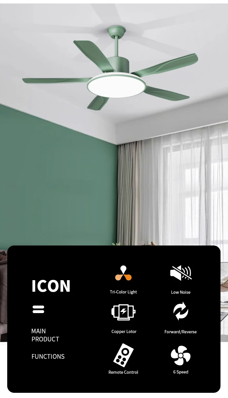 Kattokeilari kaukosäätimellä: Hallitse kattokeilaimesi helposti mukana tulevalla kaukosäätimellä, jossa on valinnat kolmelle valonlämpötilalle, kuudelle tuulitahdille