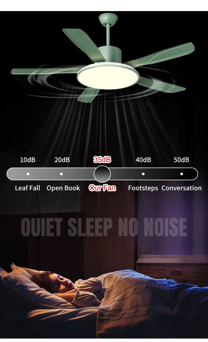 Hiljainen kääntyvä yhtälömoottori: Kattokeilaimissamme on valaisin ja kaukosäädin, joiden hiljainen, kääntyvä yhtälömoottori mahdollistaa helpon