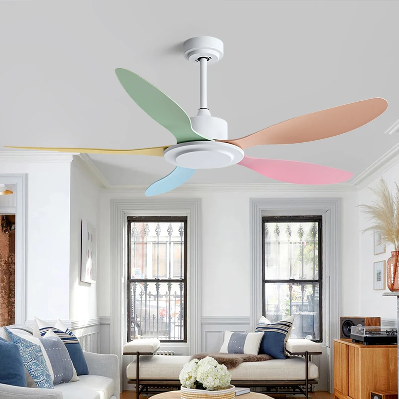Tehtaan suoraan peräisin oleva kattohelle, kauko-ohjattava, kääntyvä ilmansuihku, ei valoa, BLDC-moottori, 5 metallisiivusta, makuuhuoneeseen ja olohuoneeseen