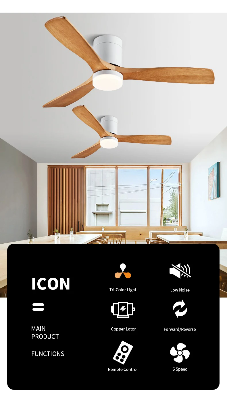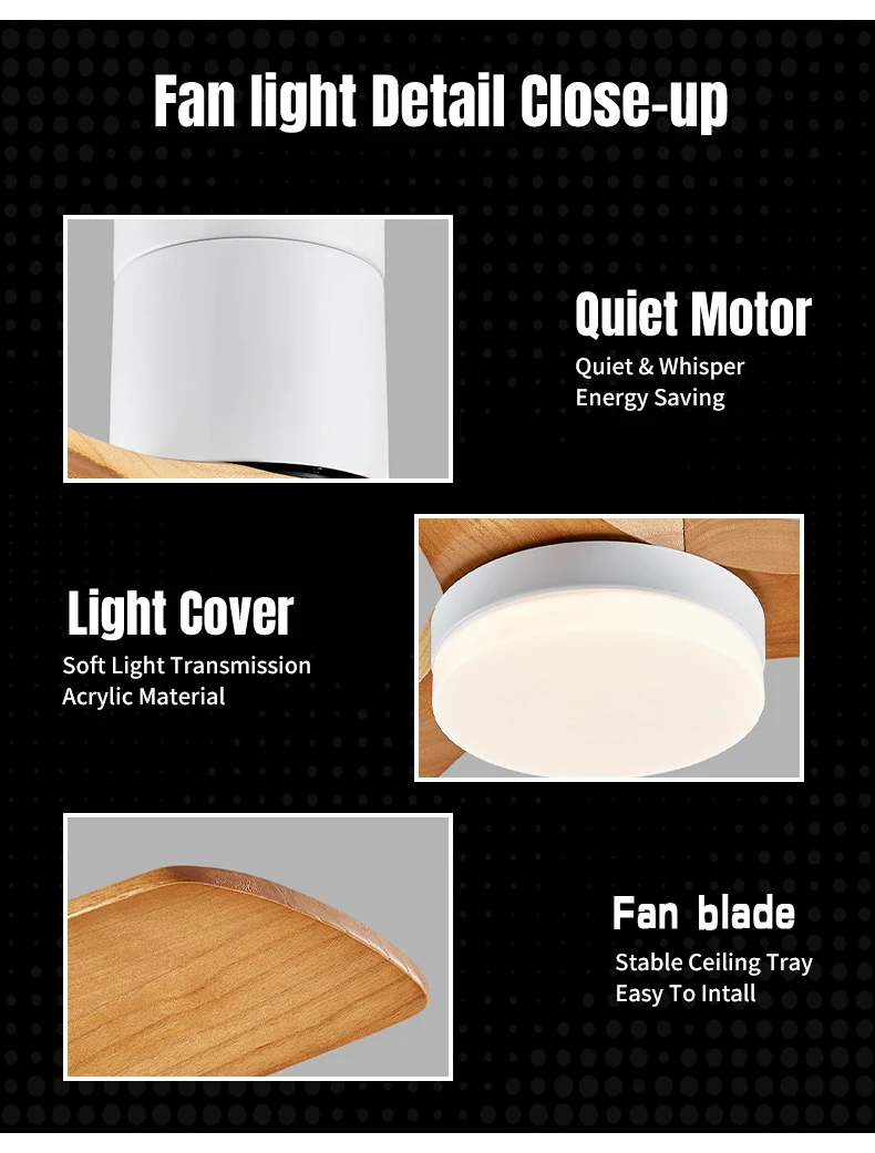 Suoraan tehtaasta puolista kattoventtileijoita valoilla ja etäisyysdimmejällä 3CCT kääntyvä BLDC-moottori puuketjuksiin mukailee- ja munkkikamariin