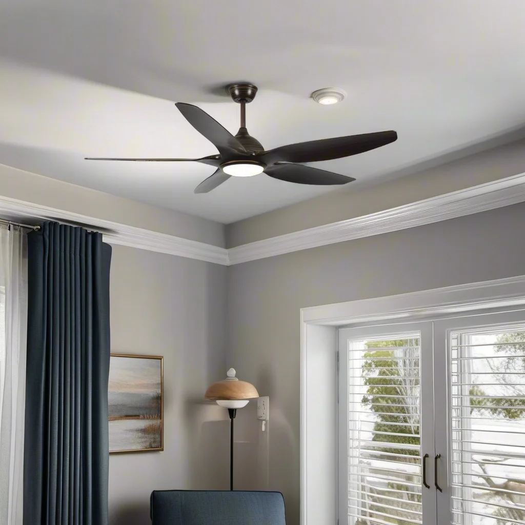 Hiljainen kääntyvä yhtälömoottori: Kattokeilaimissamme on valaisin ja kaukosäädin, joiden hiljainen, kääntyvä yhtälömoottori mahdollistaa helpon
