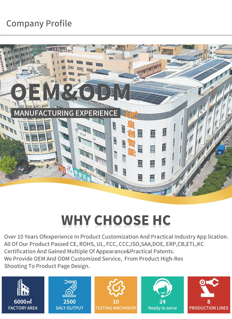Yrityksen täysi nimi on Zhongshan Huangchuang Smart Home Technology Co., Ltd., sijaitsee viidennellä kerroksella, osoite 6, Kanglin-katu, Tongyi-teollisuuspuisto, Guzhen-kaupunki, Zhongshan. Se perustettiin 19. marraskuuta 2018.