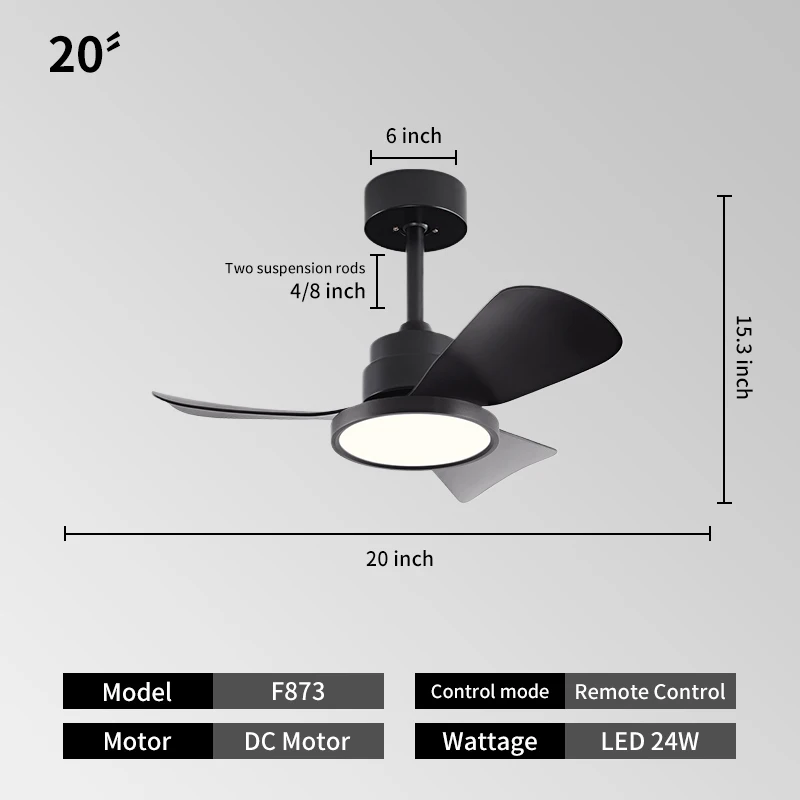 Kattokeilari valaisimella: Tämä elegantti kattokeilari valaisimella varustettuna sisältää 6,7 tuuman valaisinosan, jossa on 15 W:n alavalaisin, joka tarjoaa