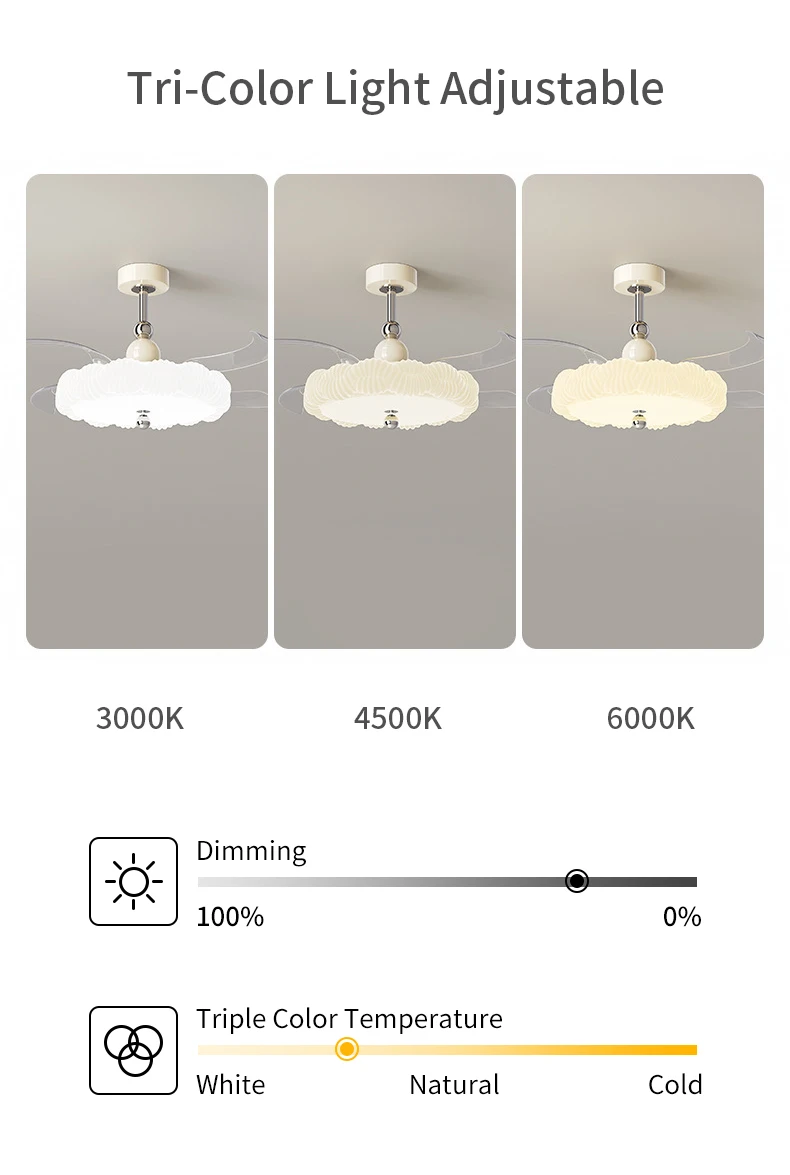 Tästä tuotteesta 【Himmennettävä ja väritaso vaihtuu】Tämän kattojuhlasuihkun valaistuksen värilämpötilaa voidaan säätää 3000K (lämmin valo) - 4500K (neutraali valo) ja lopulta 6000K (kirkas valo), ja valaistuksen kirkkautta voidaan säätää 10 % - 100 %. Voit vapaasti valita haluamasi värilämpötilan ja kirkkautta. 【Taittuvat kattotuuletin】 Tuotteessa on 4 läpinäkyvää akryylikattolevyä, joiden halkaisija on 48" (kun ne on laajennettu) ja 18,9" (kun ne on taitettu). Tuuletinlapat taittuvat tai piiloutuvat automaattisesti kun tuuletin on pois päältä. 【Hiljainen DC-moottori】 Hiljainen DC-moottori säästää 45% enemmän energiaa kuin AC-moottori, kiitos ainutlaatuisen uuden teknologian ja puhtaan kuparin ja rauta-silikoniteräksen. Et kuule mitään melua, vaikka tuuletin olisi korkeimmalla teholla. 【6 tuulensuuntaa & käänteinen toiminto】 Kattojuhlasuihkussa on 6 eri nopeustasoa. Taittuvat tuuletinlapat tuottavat 5000 CFM ilmavirtauksen, joka pitää sinut viileänä kesällä. Talvella voit käyttää käänteistä toimintoa saadaksesi ilman kiertämään huoneen läpi. 【Helppo asennus】 Hyvä uutinen! Kaikki osat tulevat mukana paketissa! Kattojuhlasuihkun asennusohjeet ovat selkeitä ja helppoja noudattaa, ja asennus valmistuu nopeasti. Voit koota sen valmiiksi 30 minuutissa! Huoneen koko: enintään 20 ft x 20 ft.