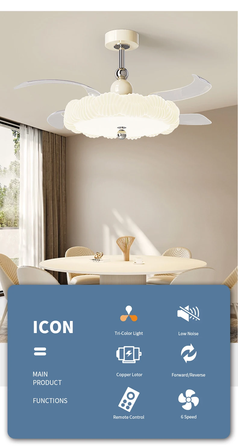 Wholesale Retractable Ceiling Fans with Lights and Remote Dimmable 3CCT Reversible BLDC Motor for Bedroom Living