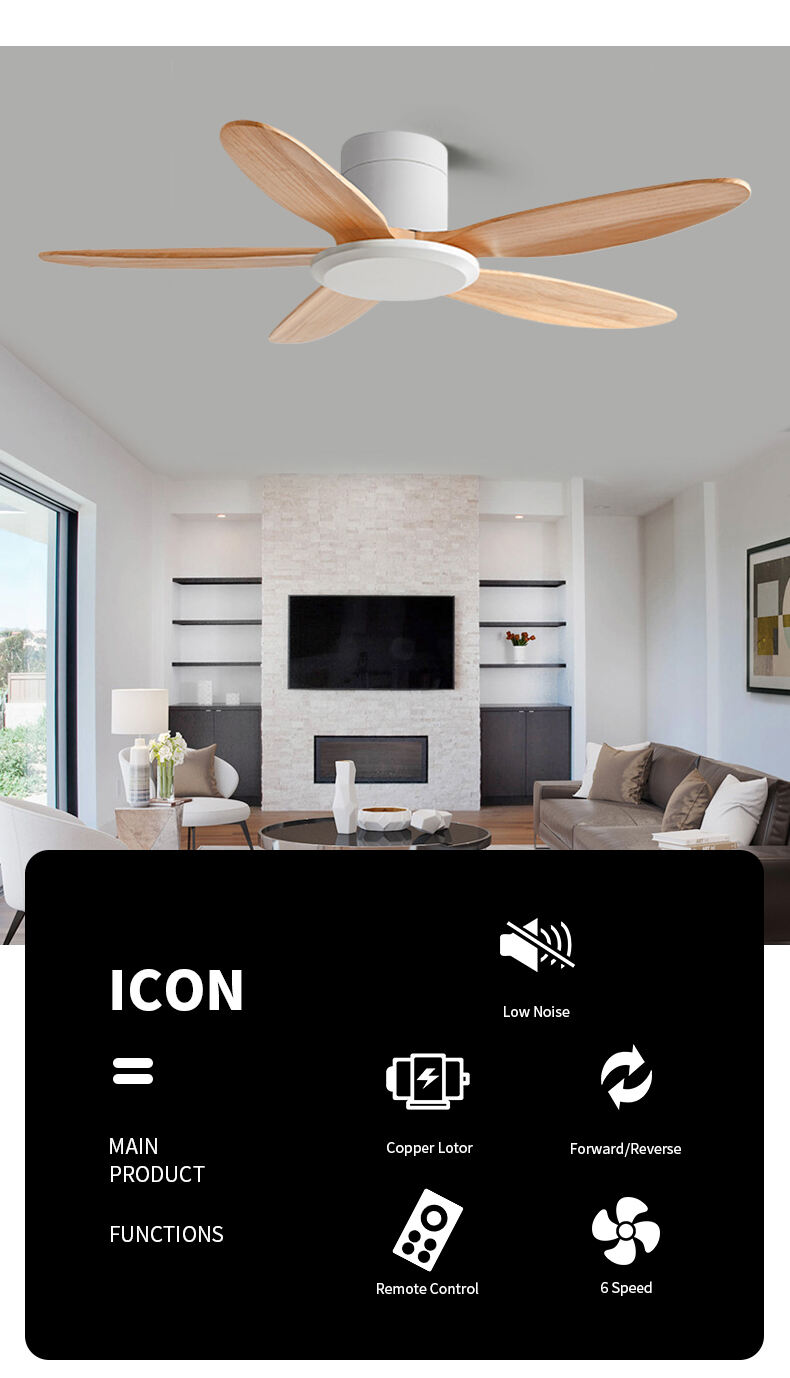 Wholesale Factory Price 6-Speed DC Energy-Saving Wood Blade Ceiling Fan for Bedrooms