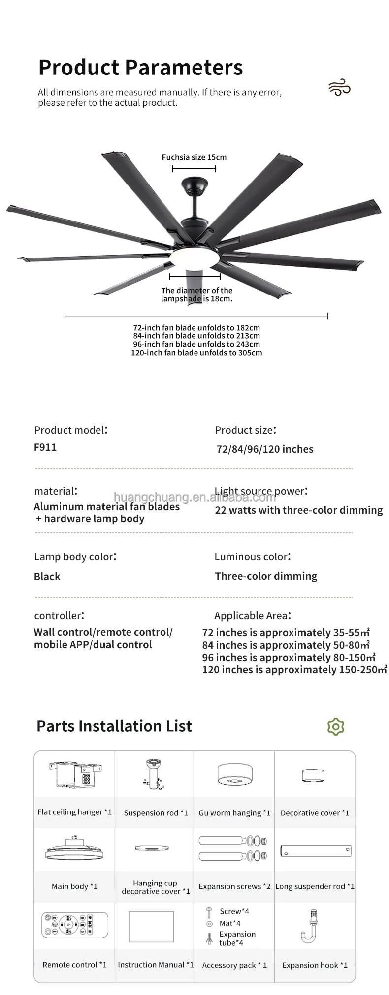 Titre : LED Noir 84'' Grandes Pales Haute Vitesse de Vent Télécommande Ventilateur de Plafond avec Lumière