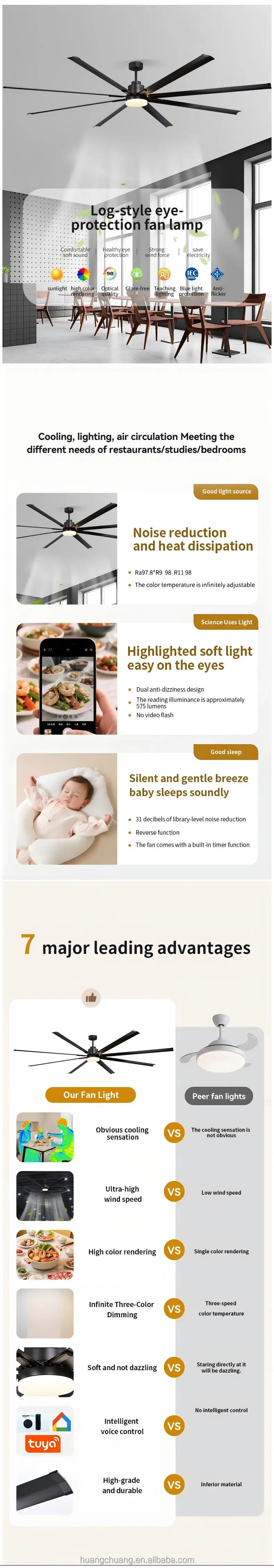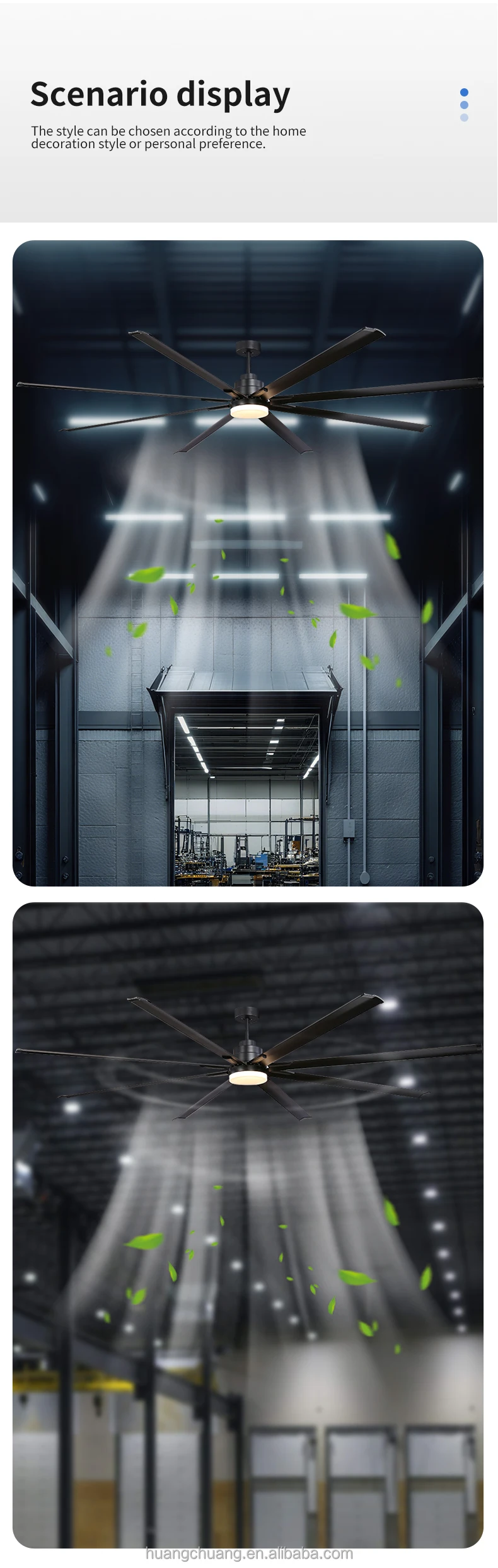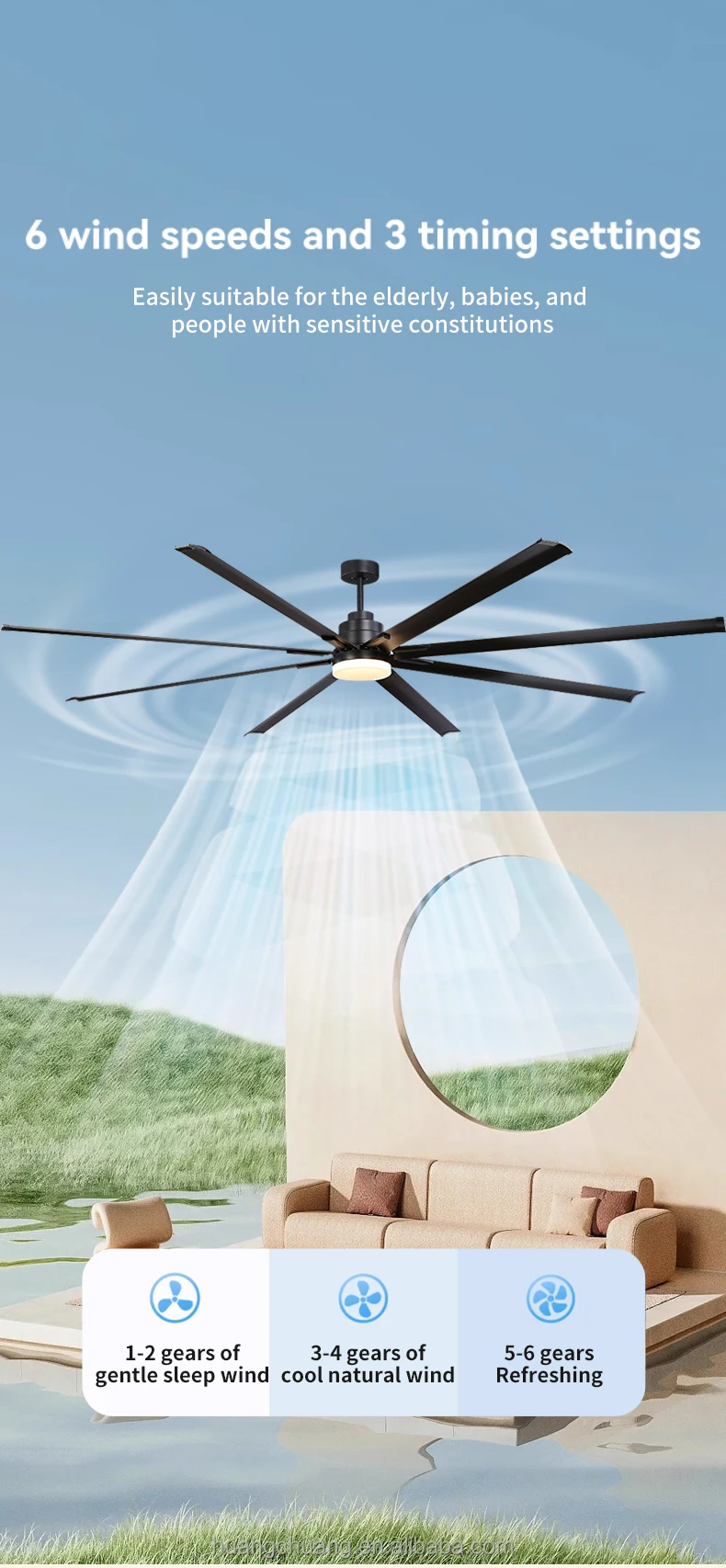 Ventilateur de plafond luminaire pour grande chambre 84 pouces 8 pales 6 vitesses télécommande moteur à courant continu moderne LED