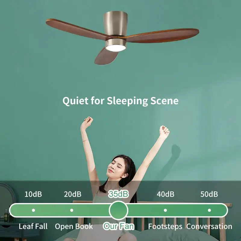 * Super Stille Ervaring: Geniet van de wind, maar houd het lawaai erbuiten! Deze plafondventilator is ontworpen voor lichte slapers en biedt u comfortabel slapen met een stille leefomgeving. Het volume daalt tot 35dB wanneer de ventilator draait, zoals het geluid van vallende bladeren, of zoals een vlinder zijn vleugels fladdert (30dB). Het is nog geschikter voor gezinnen met baby's of ouderen.