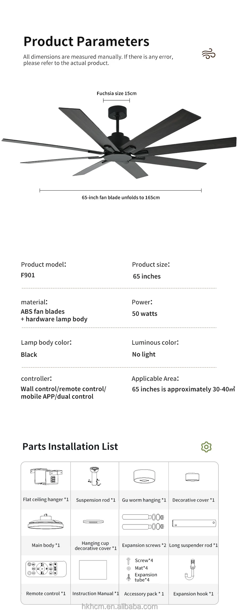 72 inch Grote Ruimte Plafondventilator Zonder Licht met Afstandsbediening