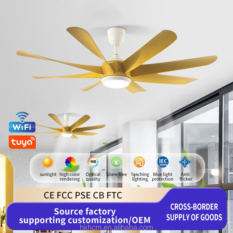 Modern Design 60 Inch 8-Blads Plafondventilator met Licht ABS DC-Motor Afstandsbediening LED Hoge CRI 95 10-Jarige Garantie Slaapkamer Woonkamer