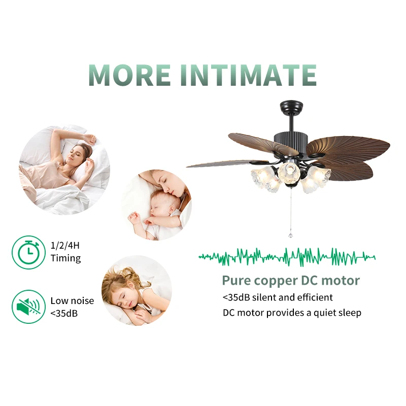Quiet Reversible DC Motor: Our ceiling fans with lights and remote integrate a quiet, reversible DC motor that allows easy
