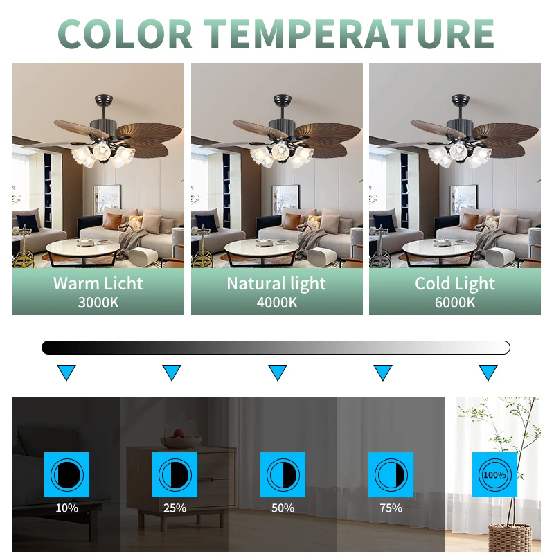 Ceiling Fan with Remote: Control your ceiling fan with ease using the included remote, which offers options for three light color