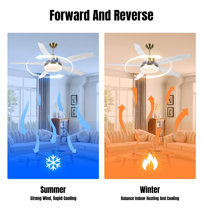 3.LED Lighting: Equipped with an LED light source, the ceiling fan provides energy-efficient lighting while producing a 6000K daylight alert color temperature.