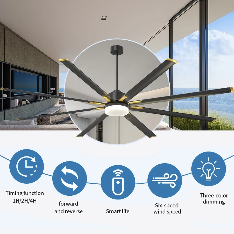 พัดลมเพดานไฟฟ้าประหยัดพลังงานยอดนิยม ขนาด 72 นิ้ว พร้อมไฟ LED ควบคุมด้วยรีโมต ใช้ภายนอก ทำงานเงียบและให้แรงลมแรง