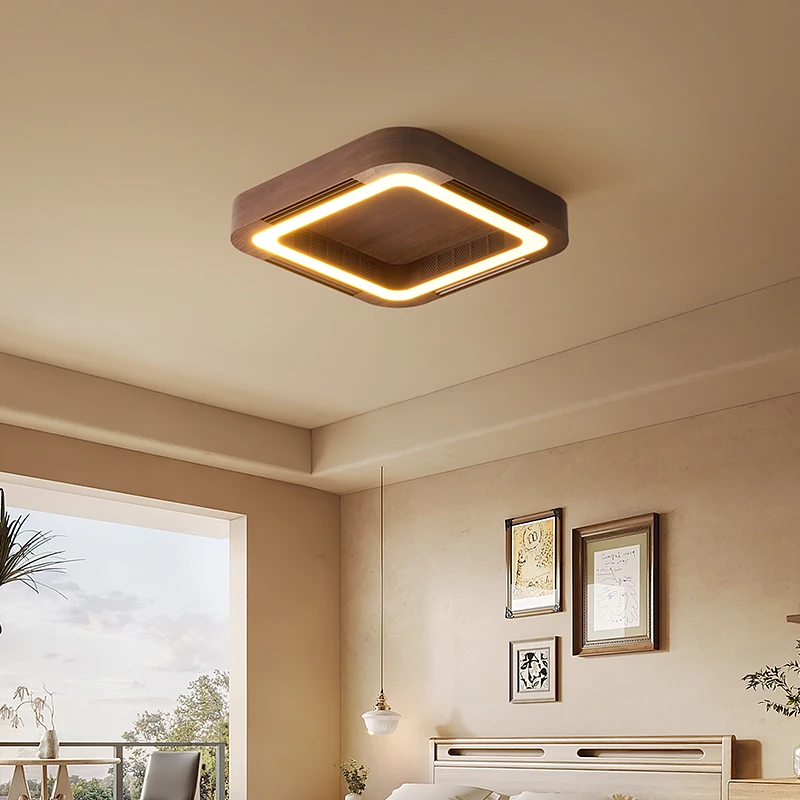 พัดลมเพดานสมาร์ท LED แบบดึงออกได้ พร้อมไฟ ใบพัดไร้ใบพัด ทันสมัย ควบคุมระยะไกล 2700K 3500K 6000K ห้องนั่งเล่น 6 ระดับความเร็ว