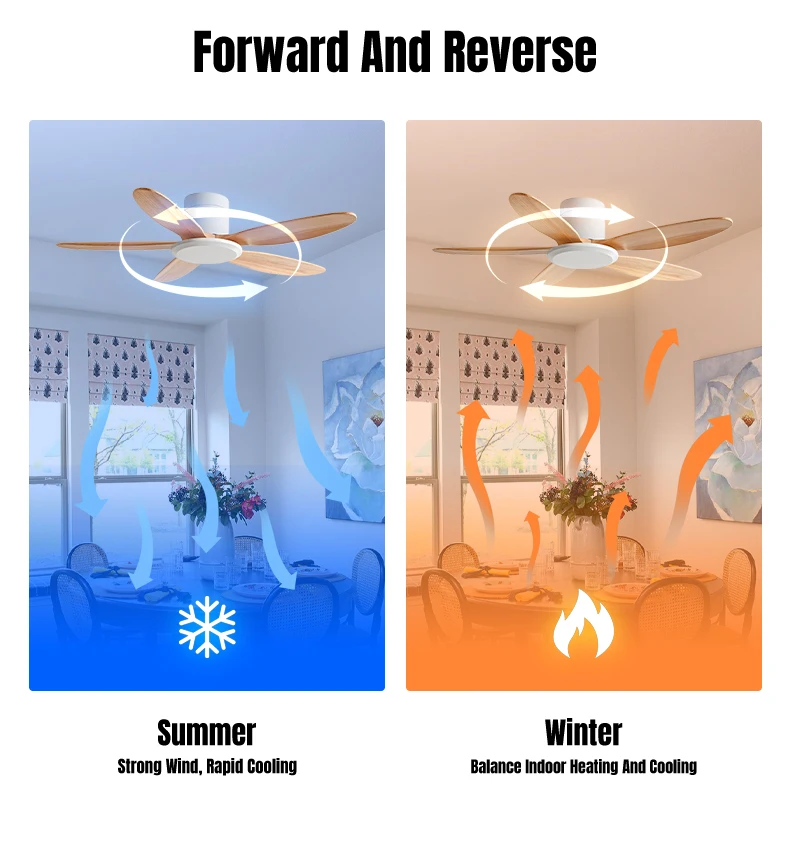 Sessiz Tersine Çevrilebilir DC Motor: Işıklı ve uzaktan kumandalı tavan vantilatörlerimiz, yaz veya kış ihtiyaçlarınıza göre kolayca