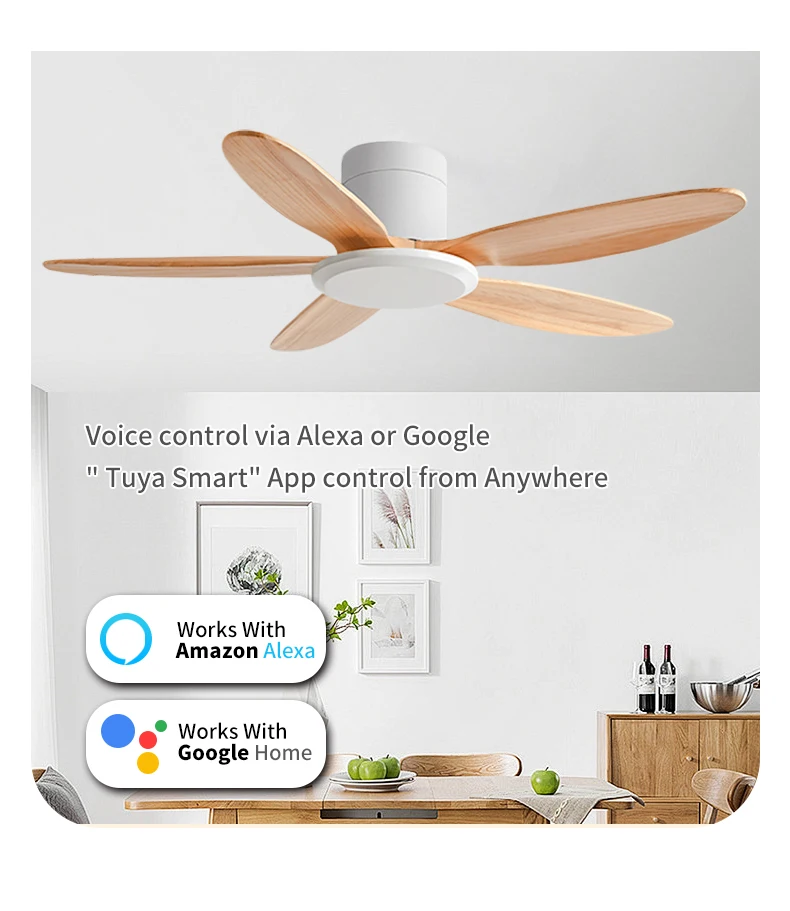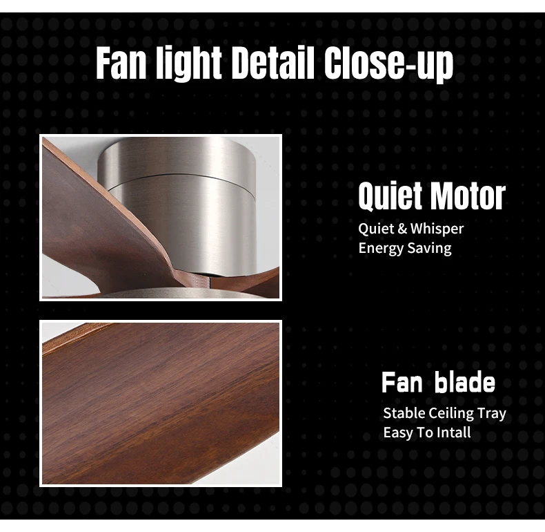 Toptan Satış 52 inç Sessiz Akıllı LED Tavan Pervanesi Ahşap Gövde 220 V DC Motor Oturma Odası Yatak Odası Tedarikçisi